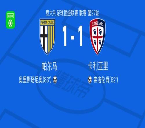 北京時間2月28日意大利足球頂級聯(lián)賽第27輪,帕爾馬主場迎來卡利亞里的挑戰(zhàn)。比賽中,卡利亞里球員塞巴斯蒂亞諾-埃斯波西托助攻弗洛倫肖完成破門,隨后帕爾馬的奧里斯塔尼奧打入一球。最終兩隊1-1握手言和。